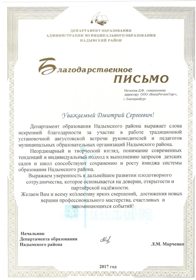 Отмечаем высокое качество поставленной техники, полное соответствие заявленным характеристикам и удобство в эксплуатации. Выражаем признательность за умение учитывать потребности образовательного процесса.