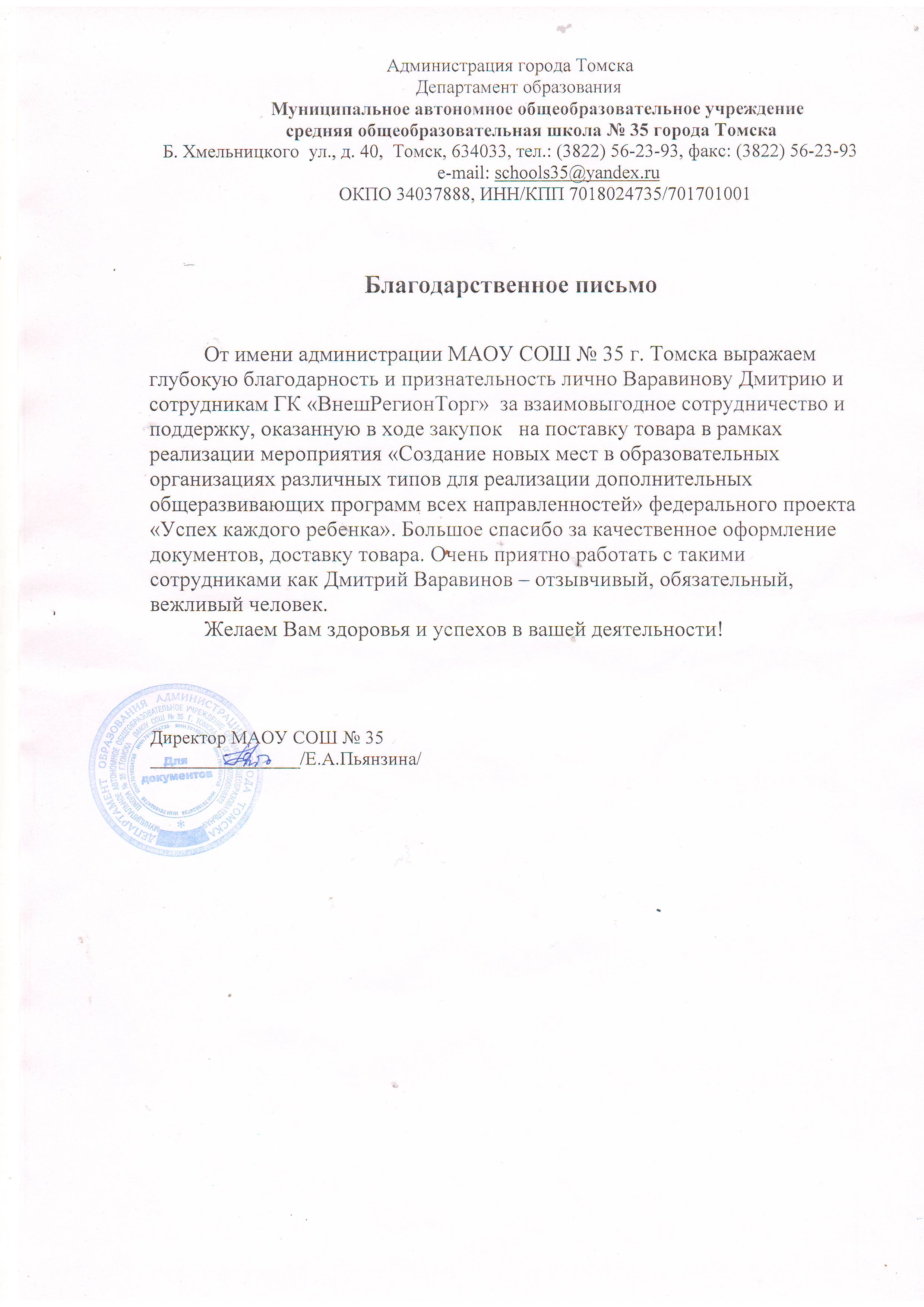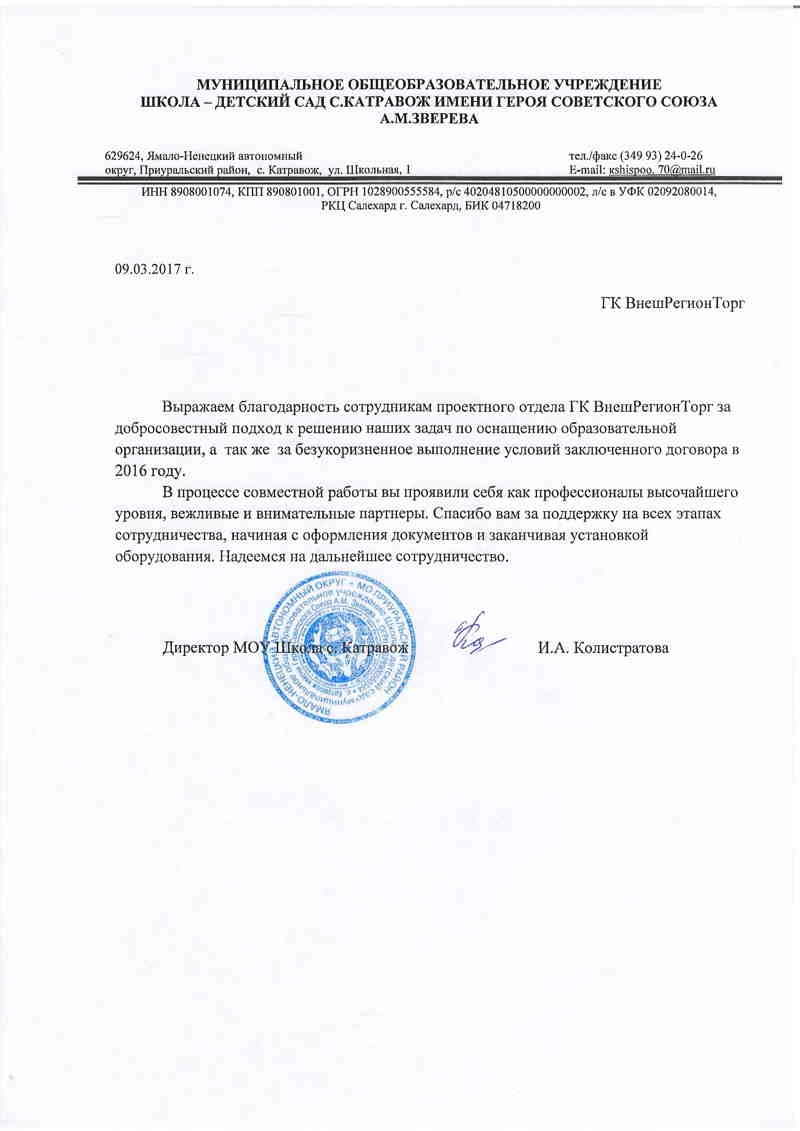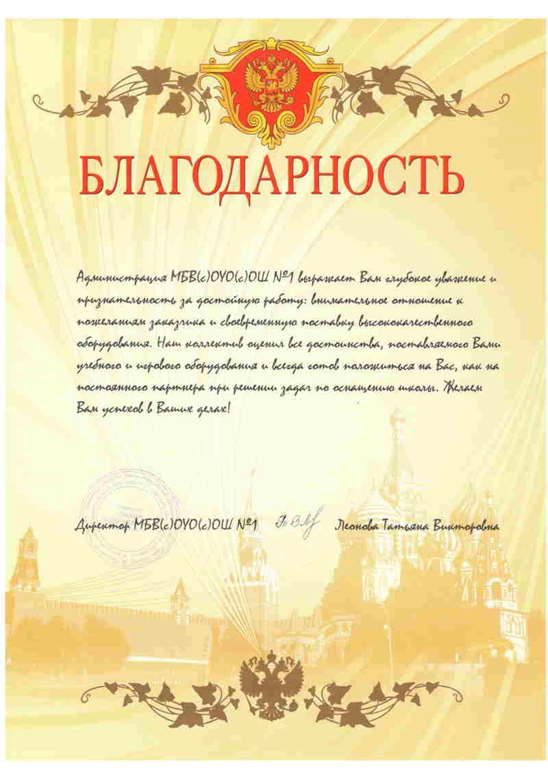 Выражаем благодарность за масштабное и комплексное оснащение нашей новой школы на 560 мест. Все работы были выполнены строго в оговорённые сроки, кабинеты полностью готовы к началу учебного процесса.