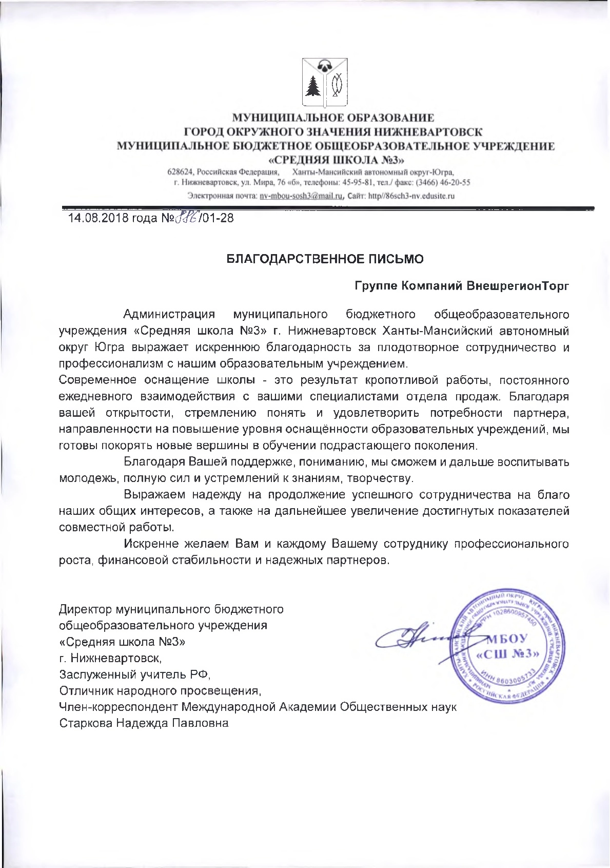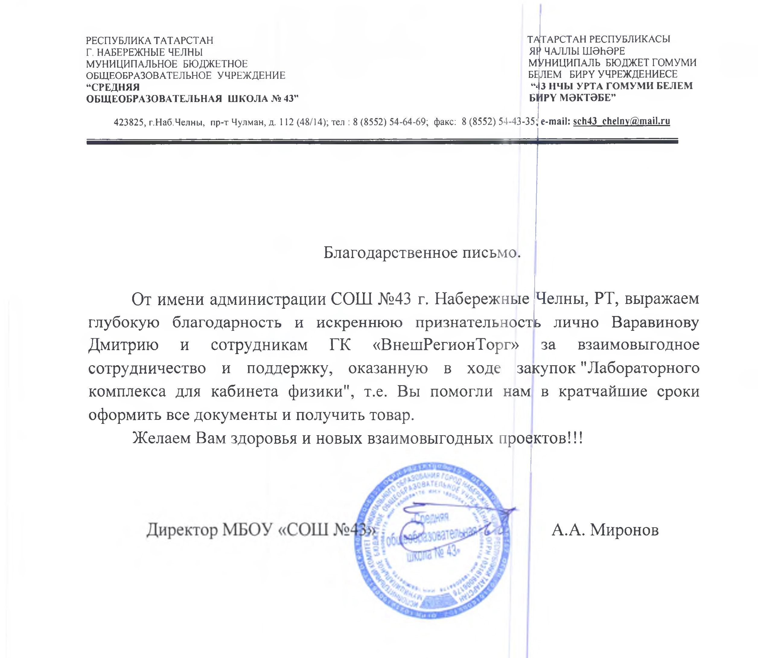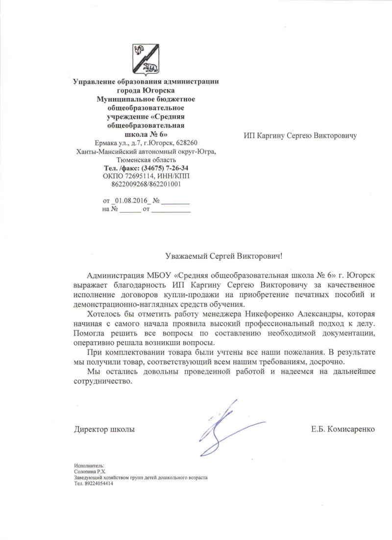 Выражаем благодарность за масштабное и комплексное оснащение нашей новой школы на 560 мест. Все работы были выполнены строго в оговорённые сроки, кабинеты полностью готовы к началу учебного процесса.